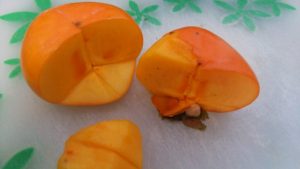 本日仕入れた柿を試食しましたところ外見や切った断面に何も変化はありませんでした。食べても甘いが暫くすると渋みが口の中を襲ってきます。