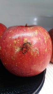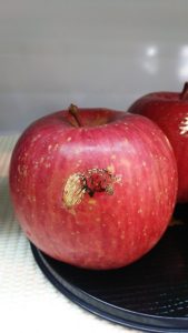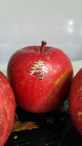 食用金箔にて『亀』『寿』『鶴』をりんごにあしらいました。