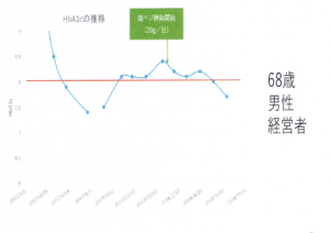 以下は糖尿病患者がスーパーベジパウダーを摂取してからのヘモグロビンA1Cの値です。