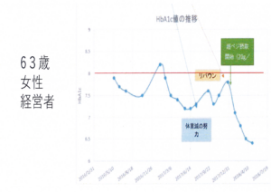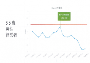 以下は糖尿病患者がスーパーベジパウダーを摂取してからのヘモグロビンA1Cの値です。