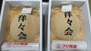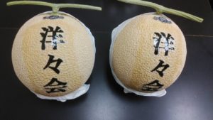 静岡県産高級マスクメロンにゴルフコンペの会のお名前をあしらいました。
