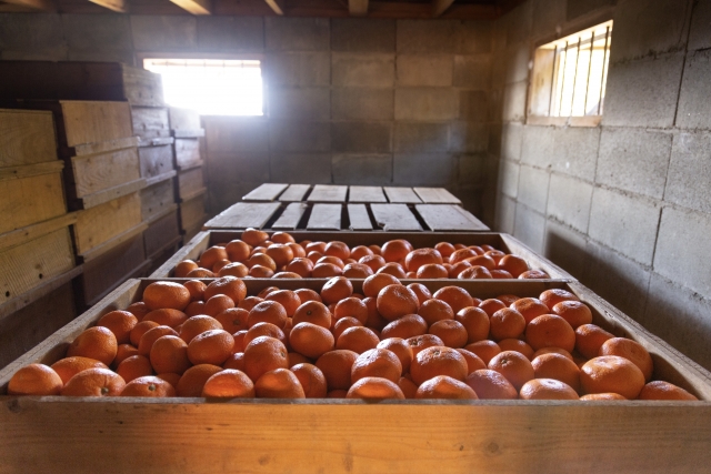 徳島では、11~12月にかけて収穫し、収穫後貯蔵された「貯蔵みかん」が出荷されます。高糖系品種だけを厳選し、貯蔵されるみかんは、温度や湿度を徹底管理した倉庫で数ヵ月間大切に貯蔵されます。